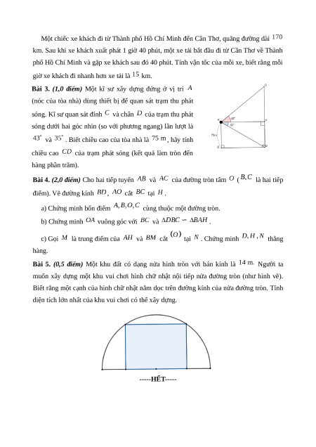 Bài 3. (1,0 điểm) Một kĩ sư xây dựng đứng ở vị trí