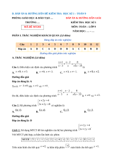 Câu 1. Điều kiện xác định của phương trình là A. B. C. D. Hướng dẫn giải Đáp án đúng là: A Ta có: khi và .