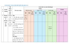 A. KHUNG MA TRẬN ĐỀ KIỂM TRA HỌC KÌ 1 – TOÁN 9 Mức độ đánh giá TNKQ Tổng Chủ đề/ Nội dung/ đơn Tự luận Tỉ lệ % TT Nhiều lựa chọn “Đúng – Sai” Trả lời ngắn Chương vị kiến thức điểm Vận Vận Vận Vận Vận Biết Hiểu Biết Hiểu Biết Hiểu Biết Hiểu Biết Hiểu dụng dụng dụng dụng dụng Phương trình quy về phương 2 1 2 1 0 trình bậc nhất một ẩn. Phương Khái niệm trình và phương trình 1 hệ 20% và hệ hai phương phương trình 2 trình 1 2 0 1 bậc nhất hai ẩn. Giải hệ phương trình bậc nhất hai ẩn. 2 Bất