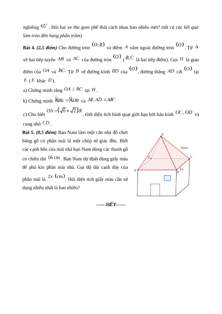 Bài 5. (0,5 điểm) Bạn Nam làm một căn nhà đồ chơi
