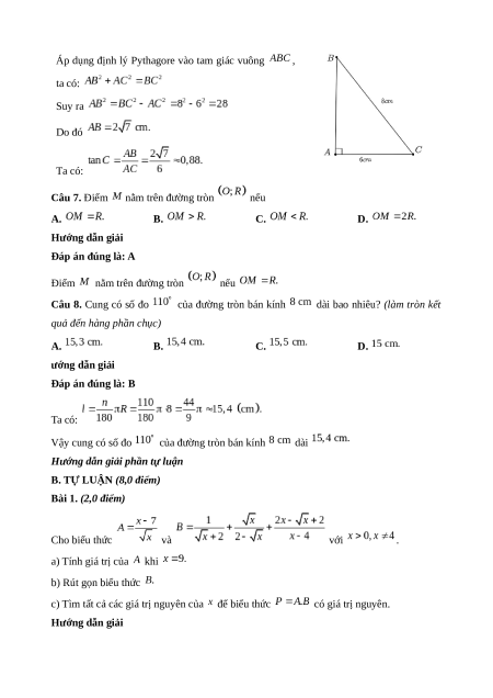 D. ĐÁP ÁN & HƯỚNG DẪN ĐỀ KIỂM TRA HỌC KÌ 1 – TOÁN 9