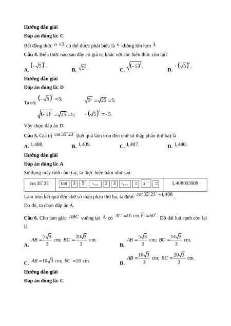 Câu 4. Biểu thức nào sau đây có giá trị khác với các biểu thức còn lại? A. B. C. D. Câu 5. Giá trị