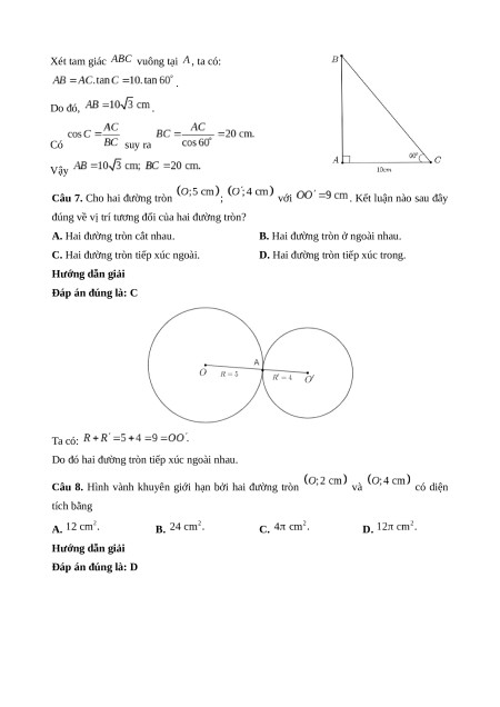 Câu 7. Cho hai đường tròn ; với . Kết luận nào sau đây