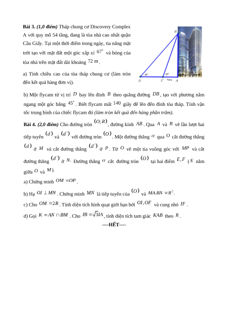 Bài 3. (1,0 điểm) Tháp chung cư Discovery Complex