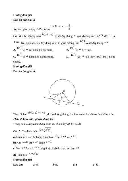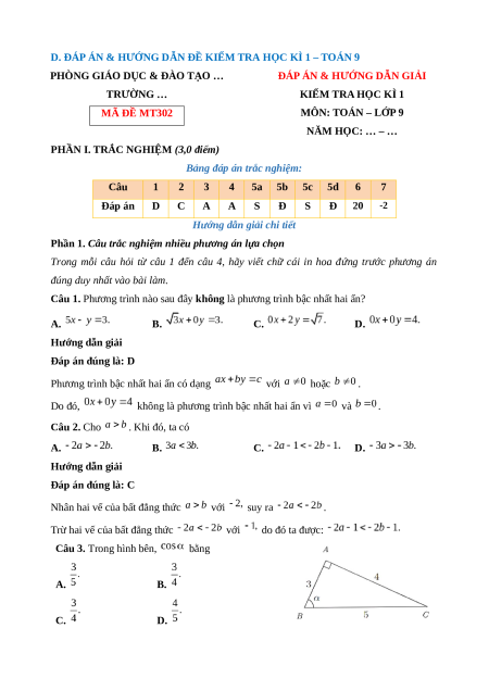 D. ĐÁP ÁN & HƯỚNG DẪN ĐỀ KIỂM TRA HỌC KÌ 1 – TOÁN 9