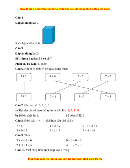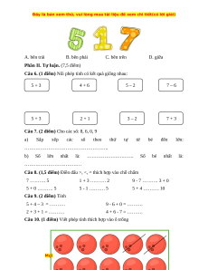 Câu 6. (1 điểm) Nối phép tính có kết quả giống nhau: 5 + 3 4 + 6 5 – 2 7 – 6 5 + 3 2 + 1 3 – 2 7 + 3