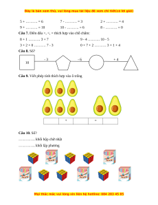 Câu 9. Viết phép tính thích hợp vào ô trống + = Câu 10. Số?