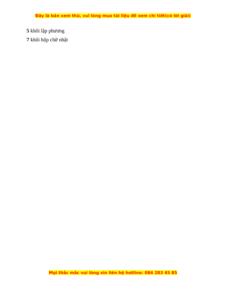 Đồ chơi rubik có dạng khối lập phương. Câu 5. Đáp án đúng là: C