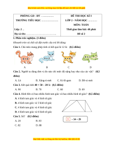 Câu 2. Người ta dùng đơn vị đo nào chỉ mức độ nặng hay nhẹ của các vật? (0,5 điểm) A. Lít B. Xăng-ti-mét C. Ki-lô-gam D. Đề-xi-mét