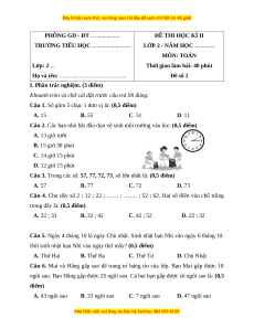Câu 3. Trong các số: 57, 77, 72, 73, số lớn nhất là: (0,5 điểm) A. 57 B. 77 C. 72 D. 73