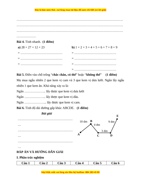 Bài 6. Tính độ dài đường gấp khúc ABCDE. (1 điểm) Bài giải E