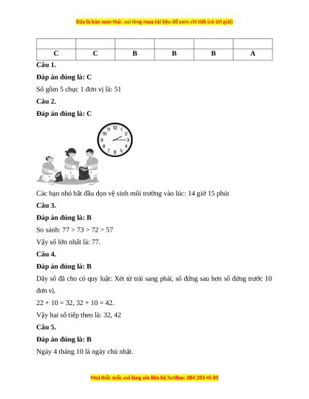 Các bạn nhỏ bắt đầu dọn vệ sinh môi trường vào lúc: 14 giờ 15 phút Câu 3. Đáp án đúng là: B