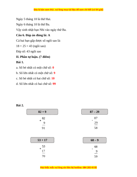 ………………………………………………………….. b. Số lớn nhất có một chữ số: