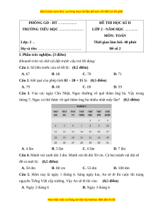 LỚP 2 - NĂM HỌC .............. MÔN: TOÁN Lớp: 2 ...