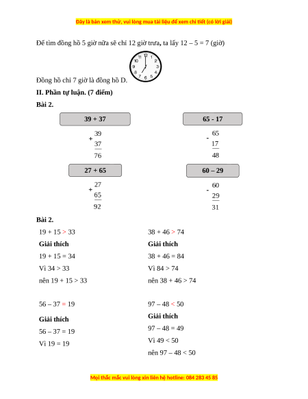 Bài 1. Đặt tính rồi tính: (1 điểm) 39 + 37 65 - 17