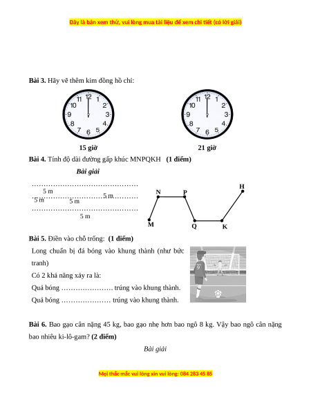 Bài 4. Tính độ dài đường gấp khúc MNPQKH (1 điểm) Bài giải