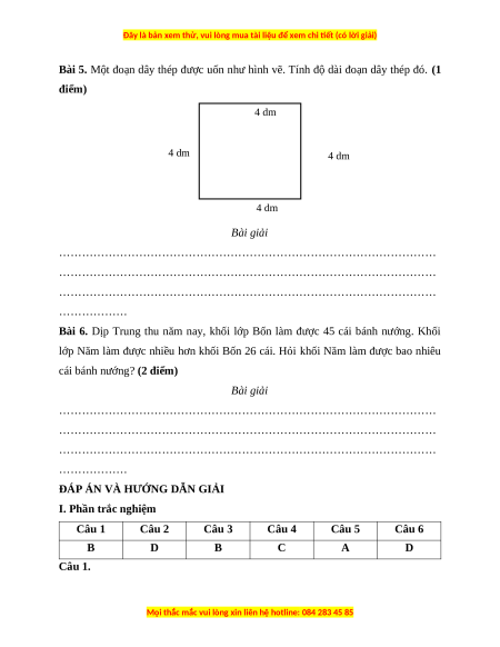 I. Phần trắc nghiệm Câu 1 Câu 2 Câu 3 Câu 4 Câu 5 Câu 6 B D B C A D Câu 1.