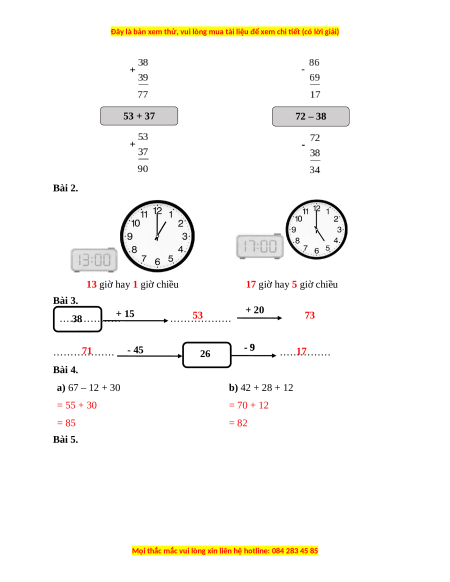 Bài 4. Tính giá trị của biểu thức. (1 điểm) a) 67 – 12 + 30 b) 42 + 28 + 12
