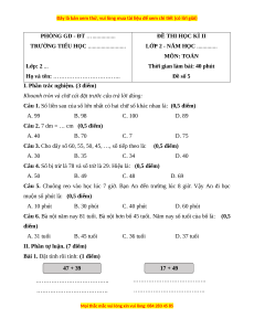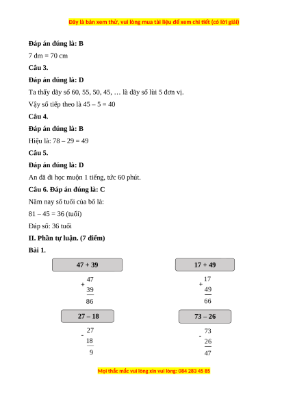 II. Phần tự luận. (7 điểm) Bài 1. 47 + 39 17 + 49 27 – 18 73 – 26