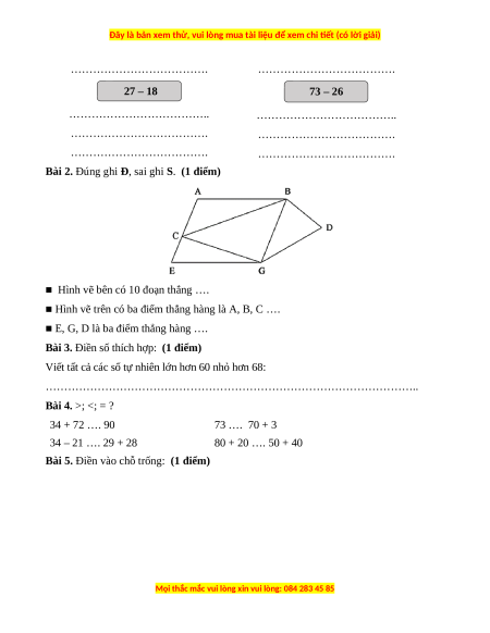 Bài 3. Điền số thích hợp: (1 điểm)