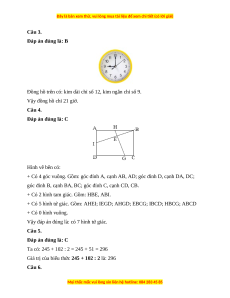 Vậy đồng hồ chỉ 21 giờ. Câu 4. Đáp án đúng là: C Hình vẽ bên có: