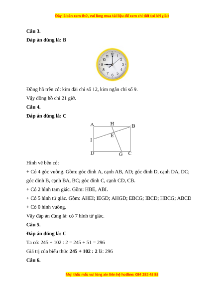 Giá trị của biểu thức 245 + 102 : 2 là: 296 Câu 6.