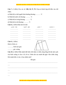 Vậy đơn vị đo lường thích hợp điền vào chỗ chấm là: mm Câu 5. Đáp án đúng là: D
