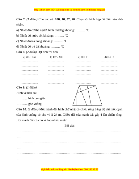 Câu 8. (2 điểm) Đặt tính rồi tính a) 201 + 356 b) 457 - 268 c) 68 × 7 d) 310 : 5 ……………….. ……………….. ……………….. ……………….. ……………….. ……………….. ……………….. ……………….. ……………….. ……………….. ……………….. ……………….. ……………….. ……………….. ……………….. ……………….. ……………….. ……………….. ……………….. ……………….. ……………….. ……………….. ……………….. ………………..
