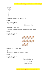 Câu 3. Số dư của phép chia 104 : 3 là: A. 1 B. 2 C. 3 D. 0 Câu 4. 1 000 ………. = 1 m