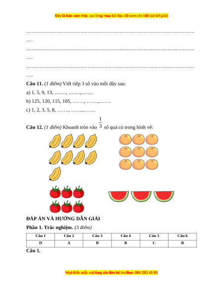 Câu 11. (1 điểm) Viết tiếp 3 số vào mỗi dãy sau: