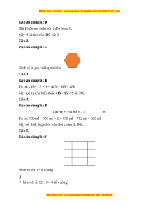 Vậy số thích hợp điền vào chỗ chấm là: 862. Câu 5. Đáp án đúng là: C Hình vẽ có: 12 ô vuông