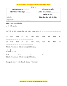 LỚP 3 - NĂM HỌC ................. MÔN: TOÁN Lớp: 3...