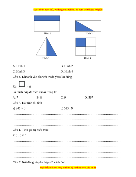 Câu 3. Khoanh vào chữ cái trước ý trả lời đúng