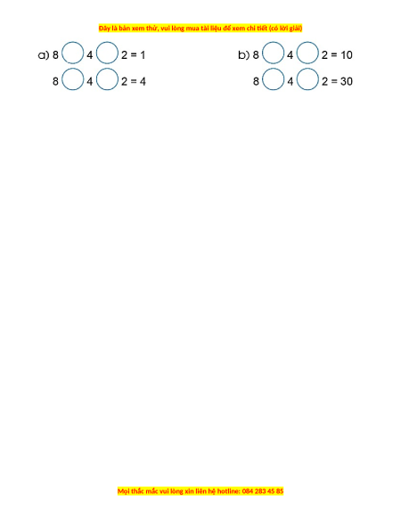 Câu 10. Chọn dấu (+, -, ×, :) hoặc dấu ngoặc ( ) vào vị trí thích hợp để biểu thức có giá