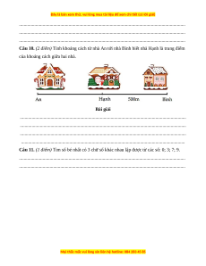 Câu 10. (2 điểm) Tính khoảng cách từ nhà An tới nhà Bình biết nhà Hạnh là trung điểm