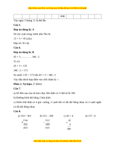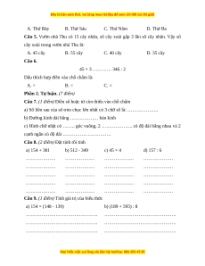 cây xoài trong vườn nhà Thu là: A. 45 cây B. 55 cây C. 40 cây D. 35 cây Câu 6. 45 × 3 ………… 346 : 2