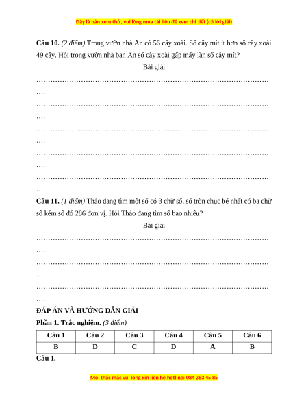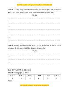 Câu 10. (2 điểm) Trong vườn nhà An có 56 cây xoài. Số cây mít ít hơn số cây xoài