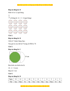 số bóng là: 12 : 3 = 4 (quả bóng) Câu 2. Đáp án đúng là: D