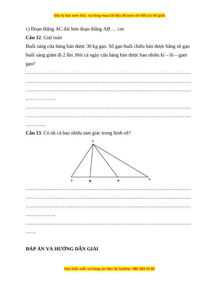 c) Đoạn thẳng AC dài hơn đoạn thẳng AB … cm Câu 12. Giải toán