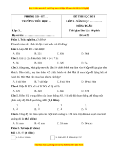LỚP 3 - NĂM HỌC ………….. MÔN: TOÁN Lớp: 3...