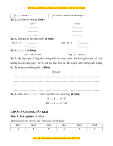 Bài 2. Đặt tính rồi tính. (1 điểm) Bài 3. 400 : 4 2 = 100 × 2 (115 – 25) : 5 = 90 : 5 = 200 = 18 Bài 4. 250 < 440 : 4 + 150