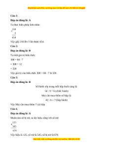 Câu 1. Gấp 218 lên 3 lần được: A. 654 B. 221 C. 634 D. 364