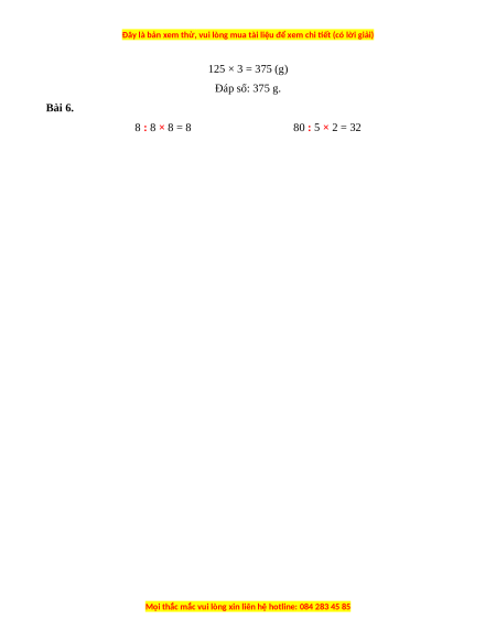 8 kg : 8 > 160 g × 6 Bài 5. Bài giải: