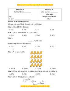 Câu 5. Số thứ nhất bằng 219. Số thứ hai gấp 4 lần số thứ nhất. Số thứ hai là: A. 876 B. 846 C. 856 D. 866