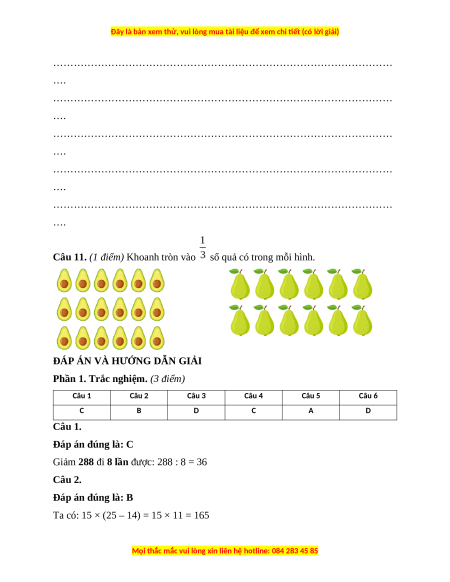 Câu 1. Giảm 288 đi 8 lần được: A. 26 B. 38 C. 36 D. 34