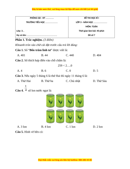 Câu 4. số lon nước ngọt là: A. 3 lon B. 4 lon C. 1 lon D. 2 lon