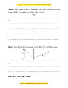 Câu 11. (1 điểm) Tính độ dài đường gấp khúc CABDE biết ABCD hình vuông. A B E 3 m 5 m C D