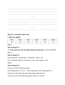Câu 1. Viết số sau: “Tám mươi tám triệu tám nghìn không trăm linh tám”: A. 88 808 008 B. 88 008 008 C. 88 080 008 D. 80 808 008