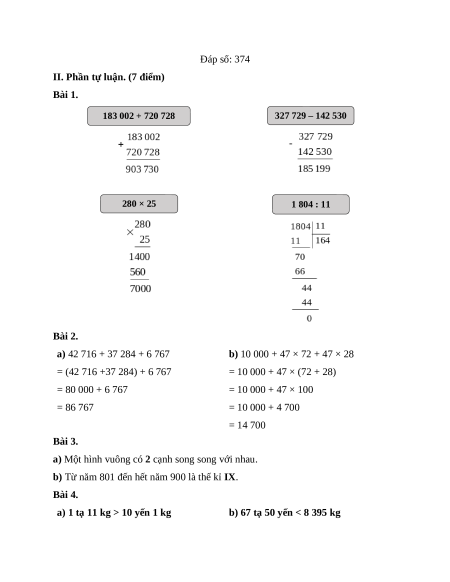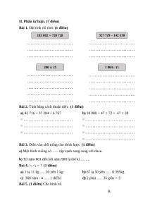 Bài 1. Đặt tính rồi tính: (1 điểm) 183 002 + 720 728 327 729 – 142 530