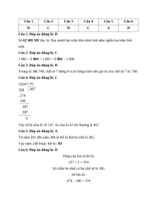 Câu 3. (0,5 điểm) Trong số 386 749, giá trị của chữ số 7 là: A. 70 B. 700 C. 7 000 D. 70 000